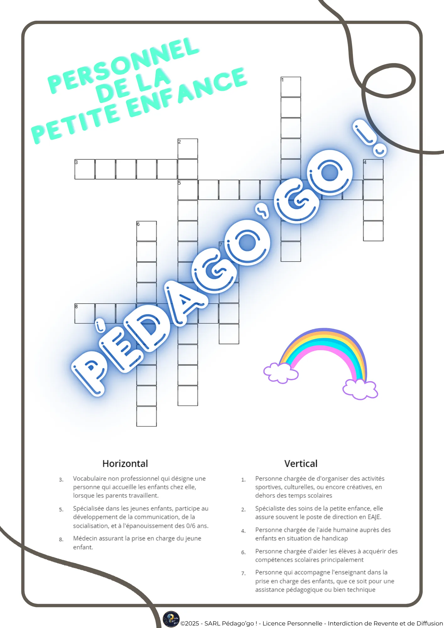 Vous êtes lycéen en filière professionnelle, étudiant en CAP AEPE, ou en reconversion vers les métiers de la petite enfance ? Affinez vos connaissances sur le personnel de la petite enfance de manière ludique et efficace grâce à notre mot croisé téléchargeable et imprimable !
