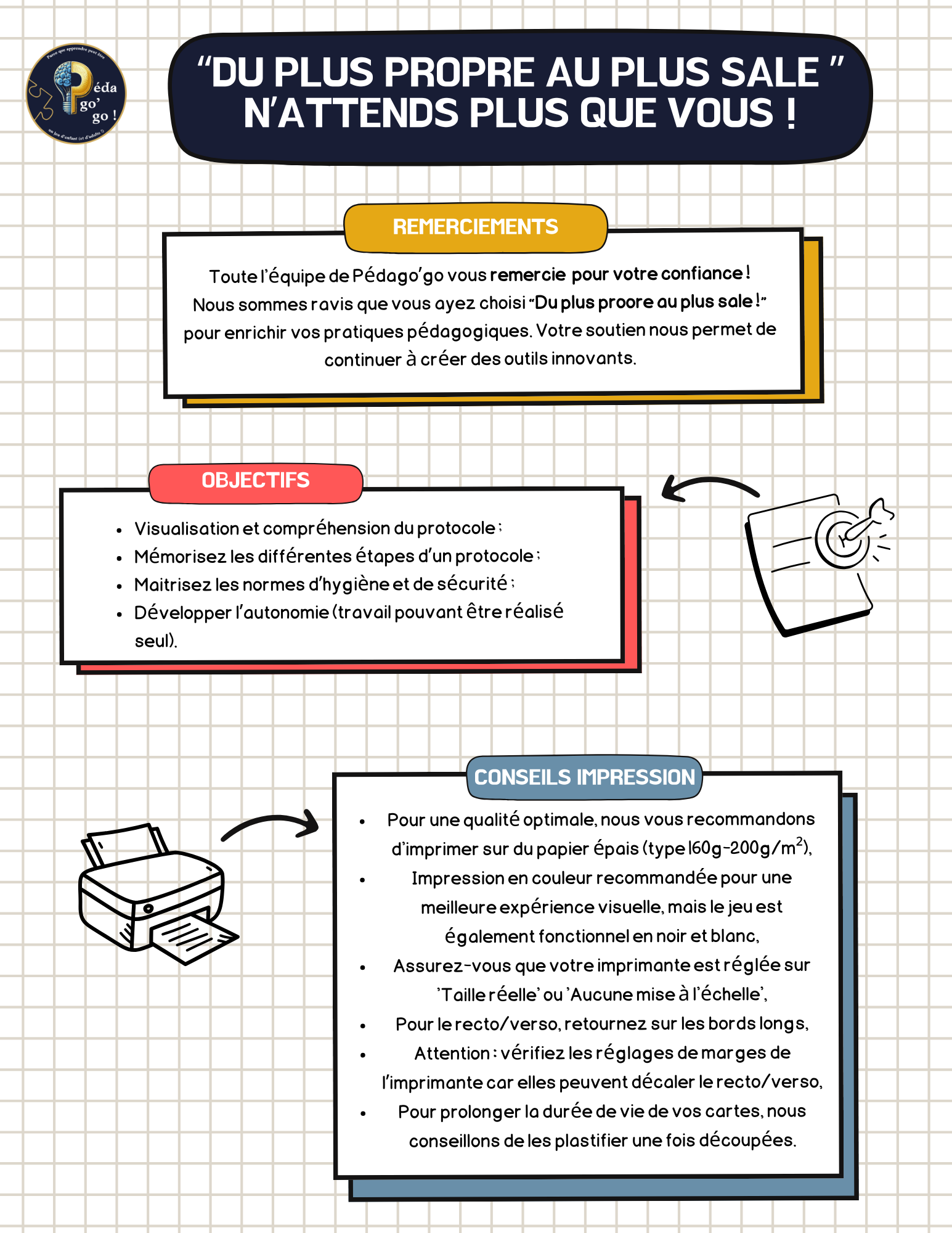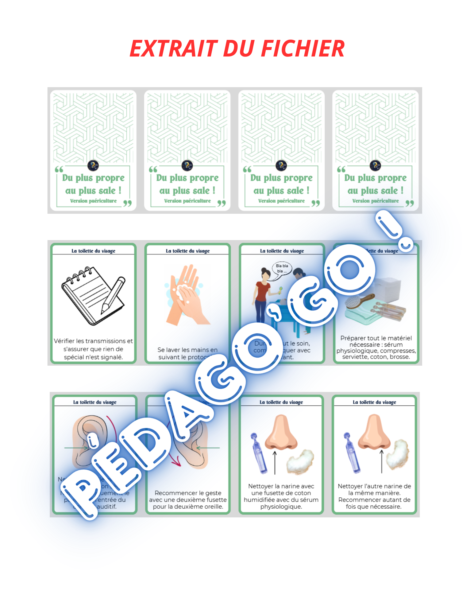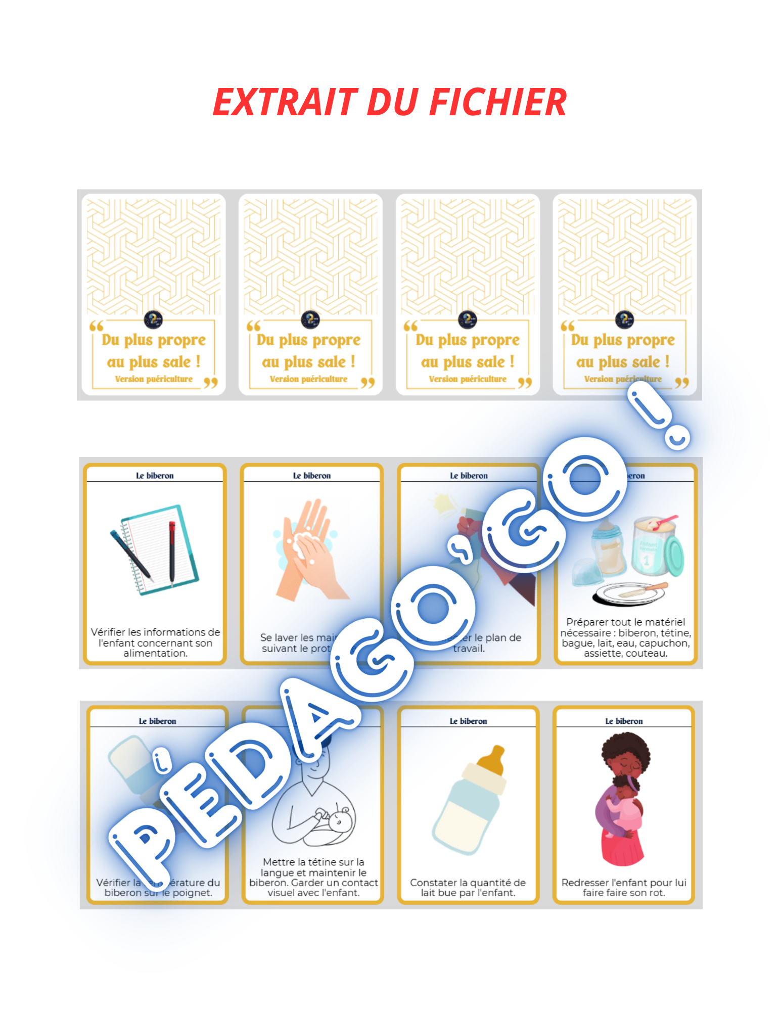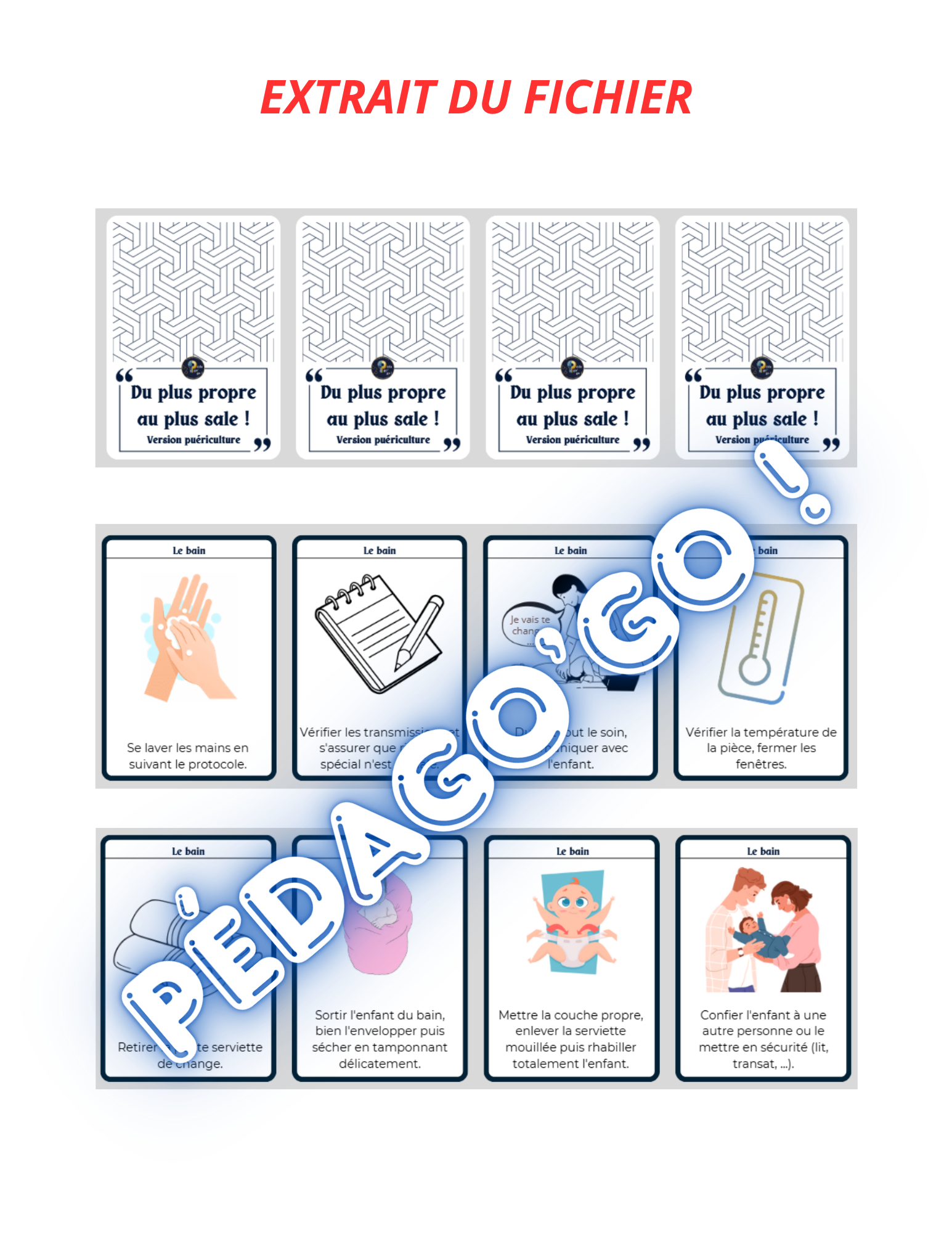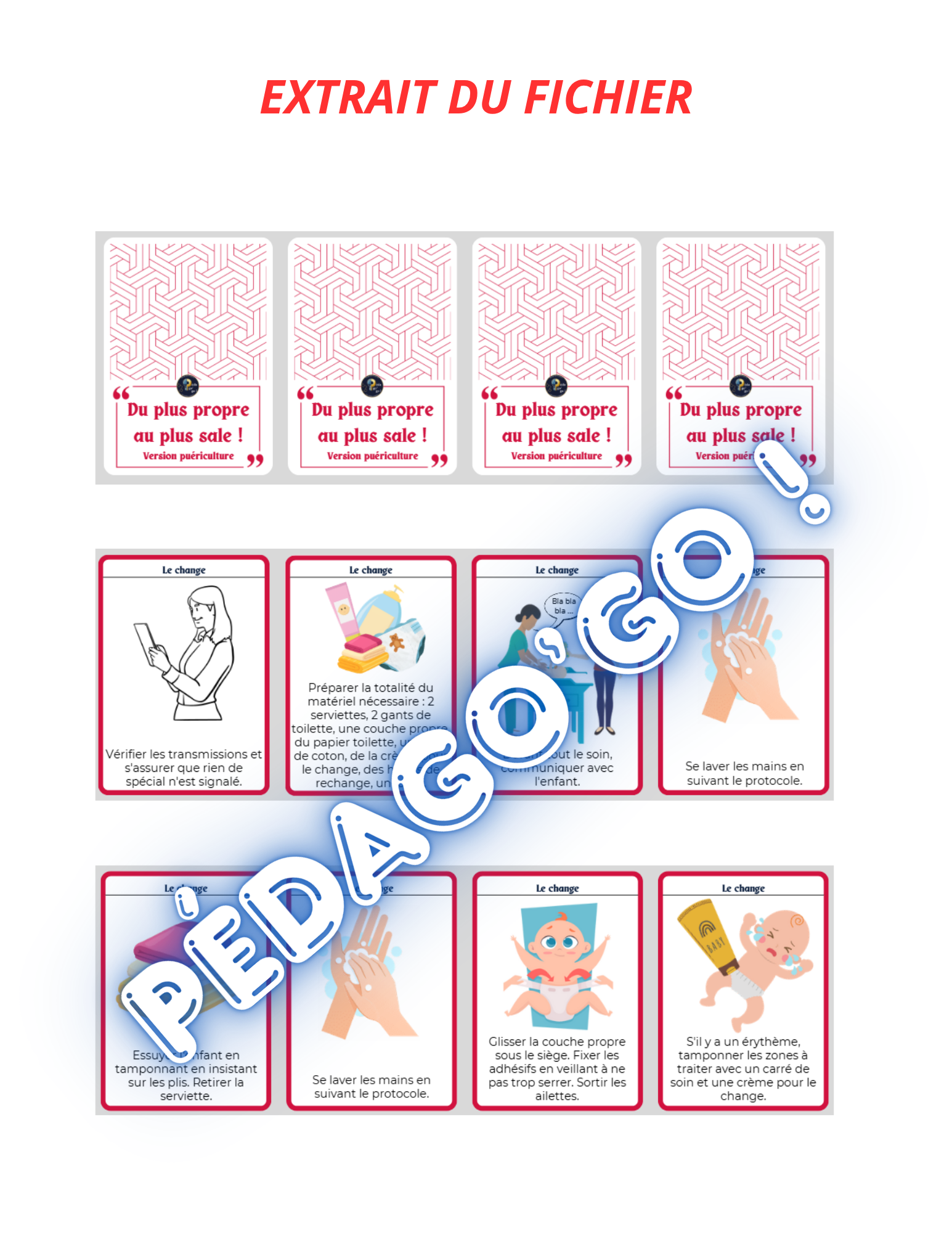 Découvrez « Du plus propre au plus sale », le jeu de chronologie qui révolutionne l’apprentissage des protocoles de soin en puériculture ! Idéal pour les étudiants en services à la personne, les stagiaires, les formateurs et les professionnels, ce jeu vous permet de maîtriser avec précision et méthode les étapes cruciales de l’hygiène et des soins.