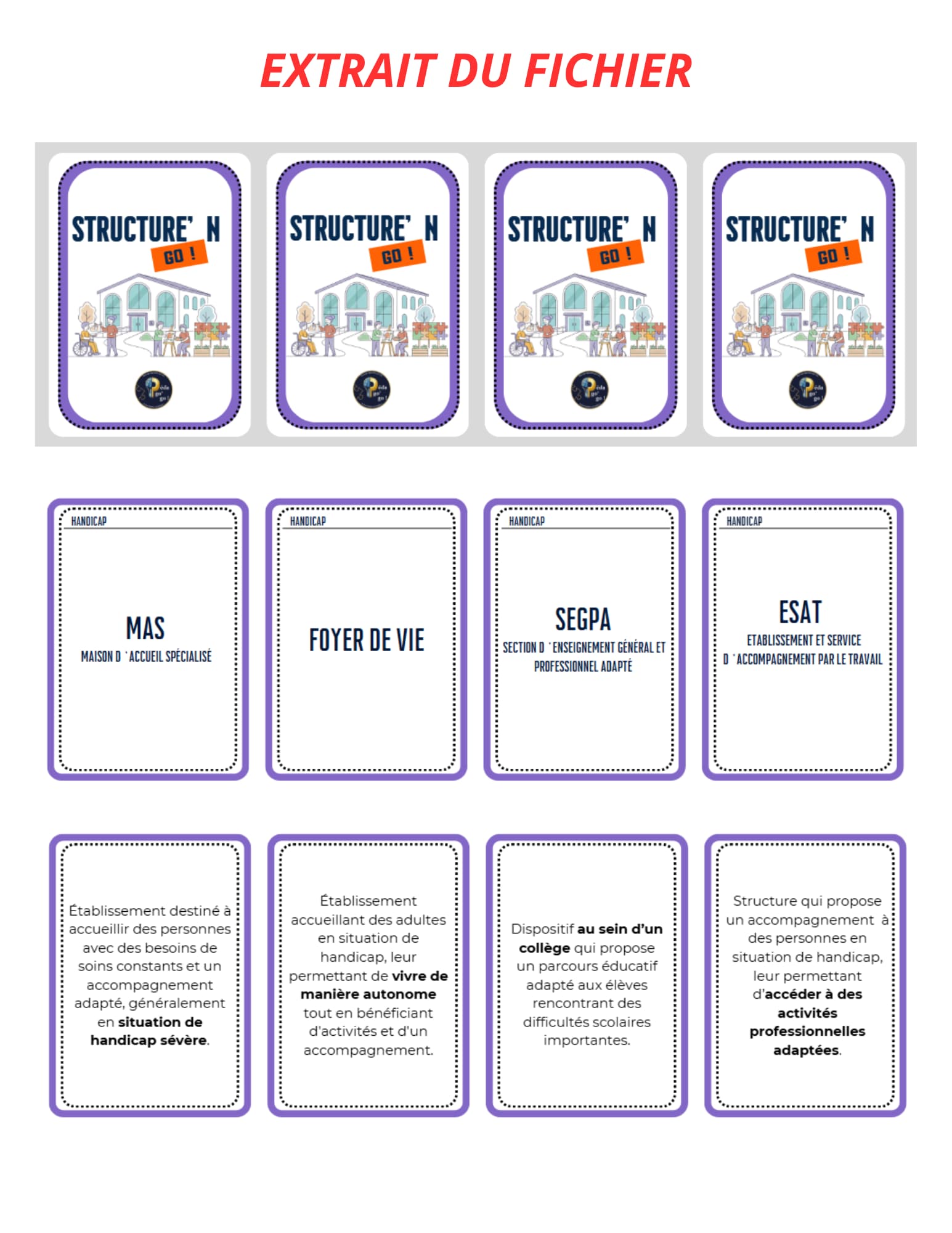 • Contenu riche et pertinent : Chaque carte contient des informations claires et concises. Vous y trouverez les noms des structures, leurs définitions précises et des détails sur leurs objectifs et le public qu’elles servent.
